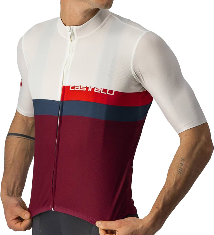 A Blocco Jersey i rød og hvid er et must-have for cykelentusiaster. Denne cykeltrøje fra Castelli er ideel til træning og har en række funktionelle egenskaber.
